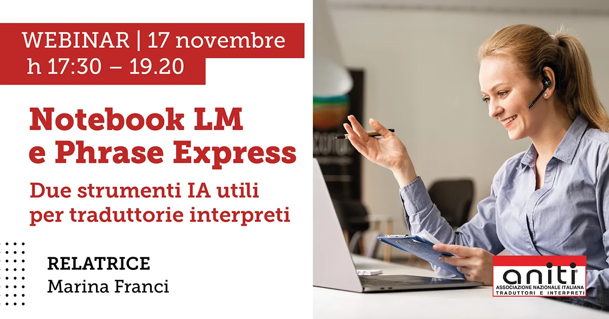 Webinar – Notebook LM e Phrase Express: DUE STRUMENTI IA UTILI PER TRADUTTORI E INTERPRETI